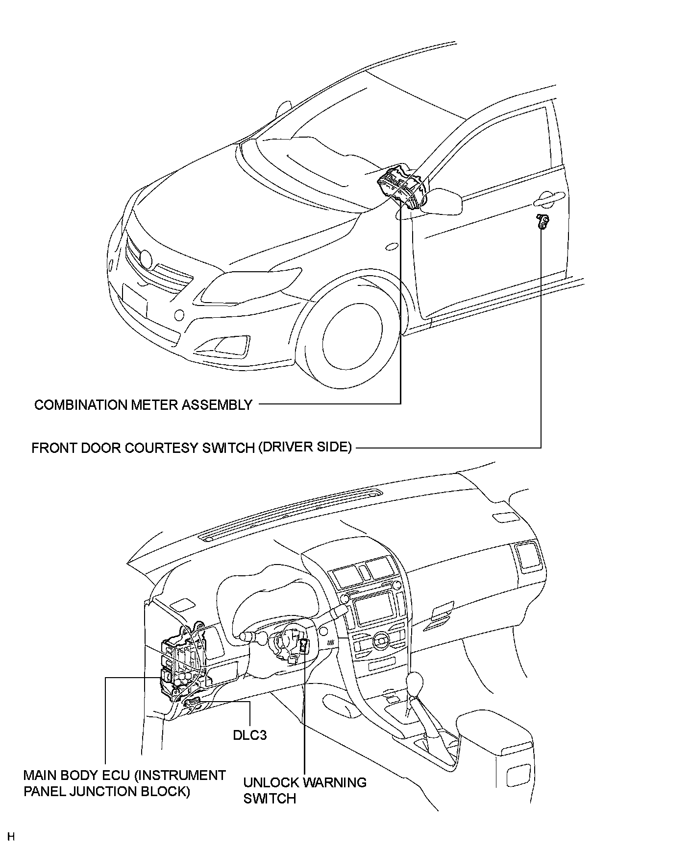 DOOR LOCK: KEY REMINDER WARNING SYSTEM: PARTS LOCATION