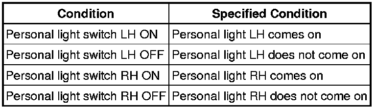 (2) Inspect the personal light operation while both of the personal light switches (LH and RH) are off.
