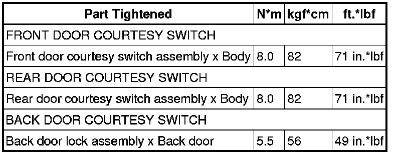 SPECIFICATIONS: LIGHTING (INT): TORQUE SPECIFICATIONS
