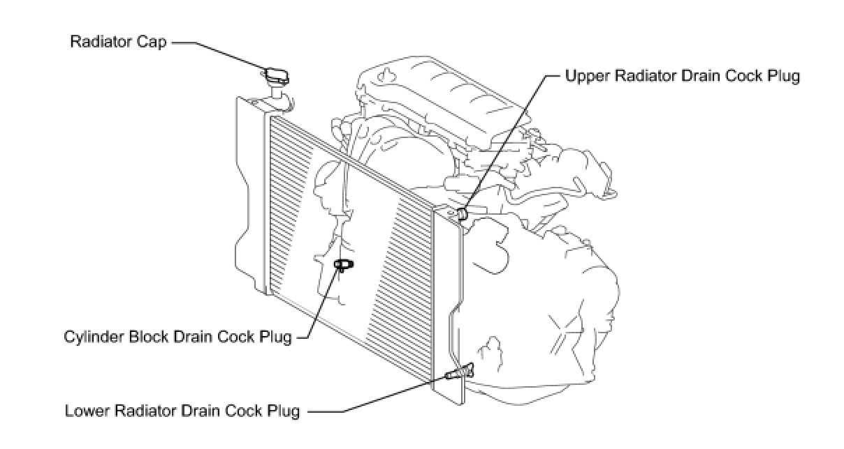 Do not loosen the lower radiator drain cock plug while the engine and radiator are still hot.