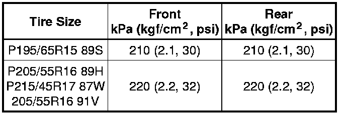 Cold Tire Inflation Pressure