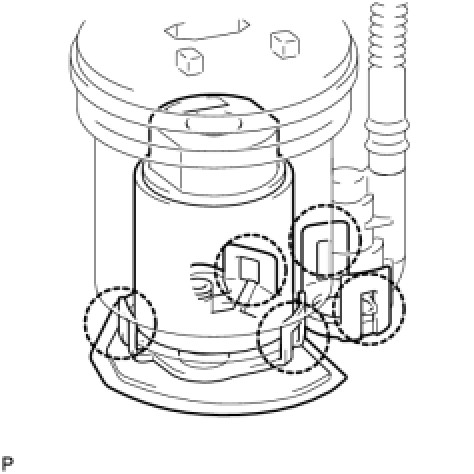 (d) Engage the 5 claws, and install the fuel pump filter onto the fuel pump with fuel filter.