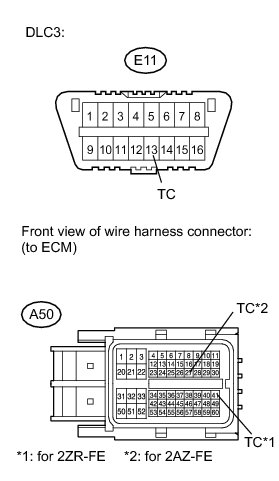 1. CHECK WIRE HARNESS (TC OF DLC3 - TC OF ECM)