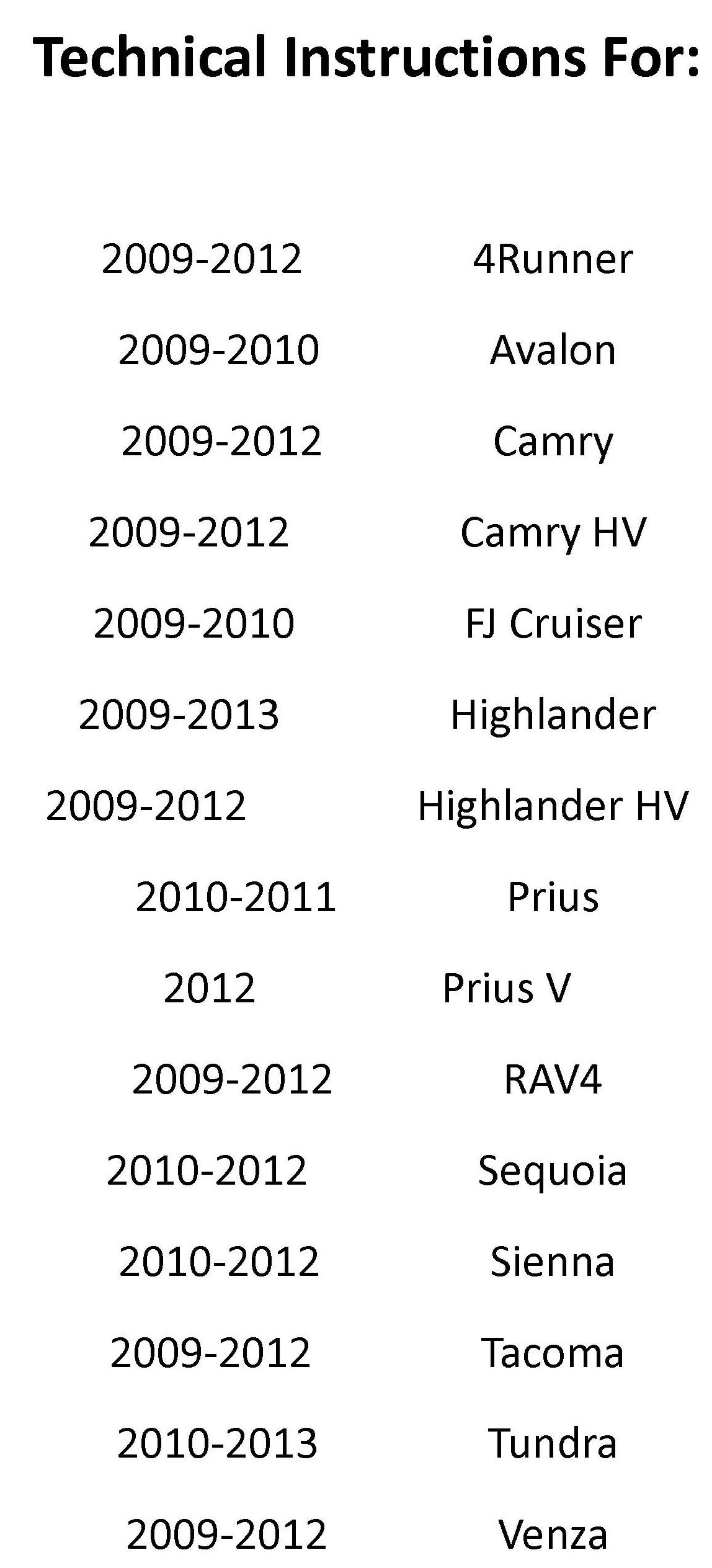 Technical Instructions and Procedure For Various Years and Models