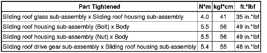 SPECIFICATIONS: SLIDING ROOF / CONVERTIBLE: TORQUE SPECIFICATIONS