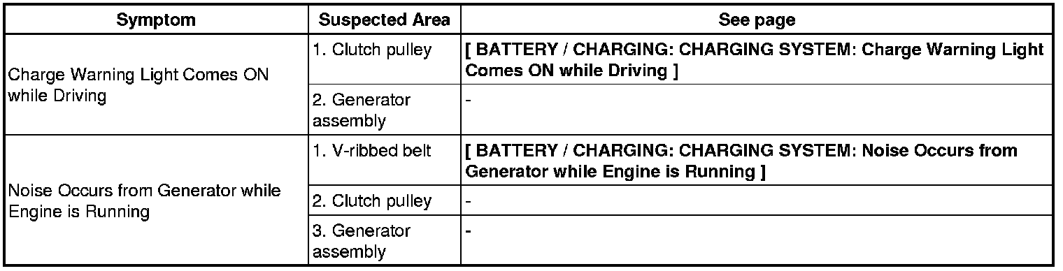 2AZ-FE BATTERY / CHARGING: CHARGING SYSTEM: PROBLEM SYMPTOMS TABLE