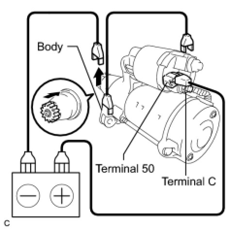 (1) Check that the pinion gear does not return inward after the cable is disconnected from terminal C.