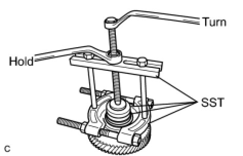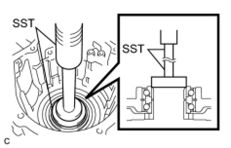 (c) Using SST, remove the tapered roller bearing inner race.
