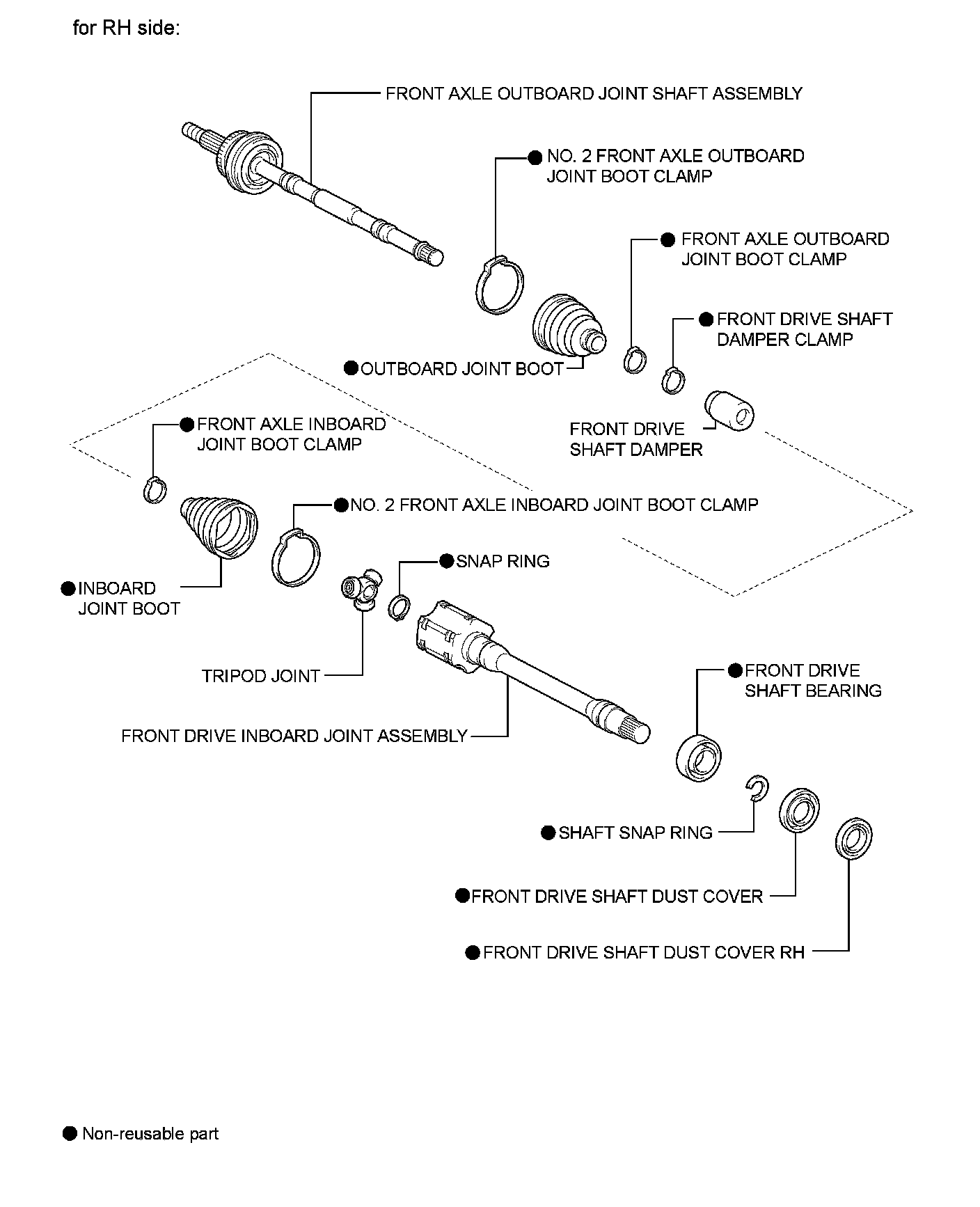 DRIVE SHAFT / PROPELLER SHAFT: FRONT DRIVE SHAFT ASSEMBLY (for 2AZ-FE): COMPONENTS