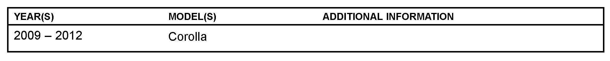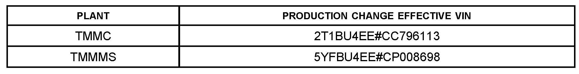2009 - 2012 TMMC and TMMMS built Corolla vehicles produced BEFORE the Production Change Effective VINs shown.