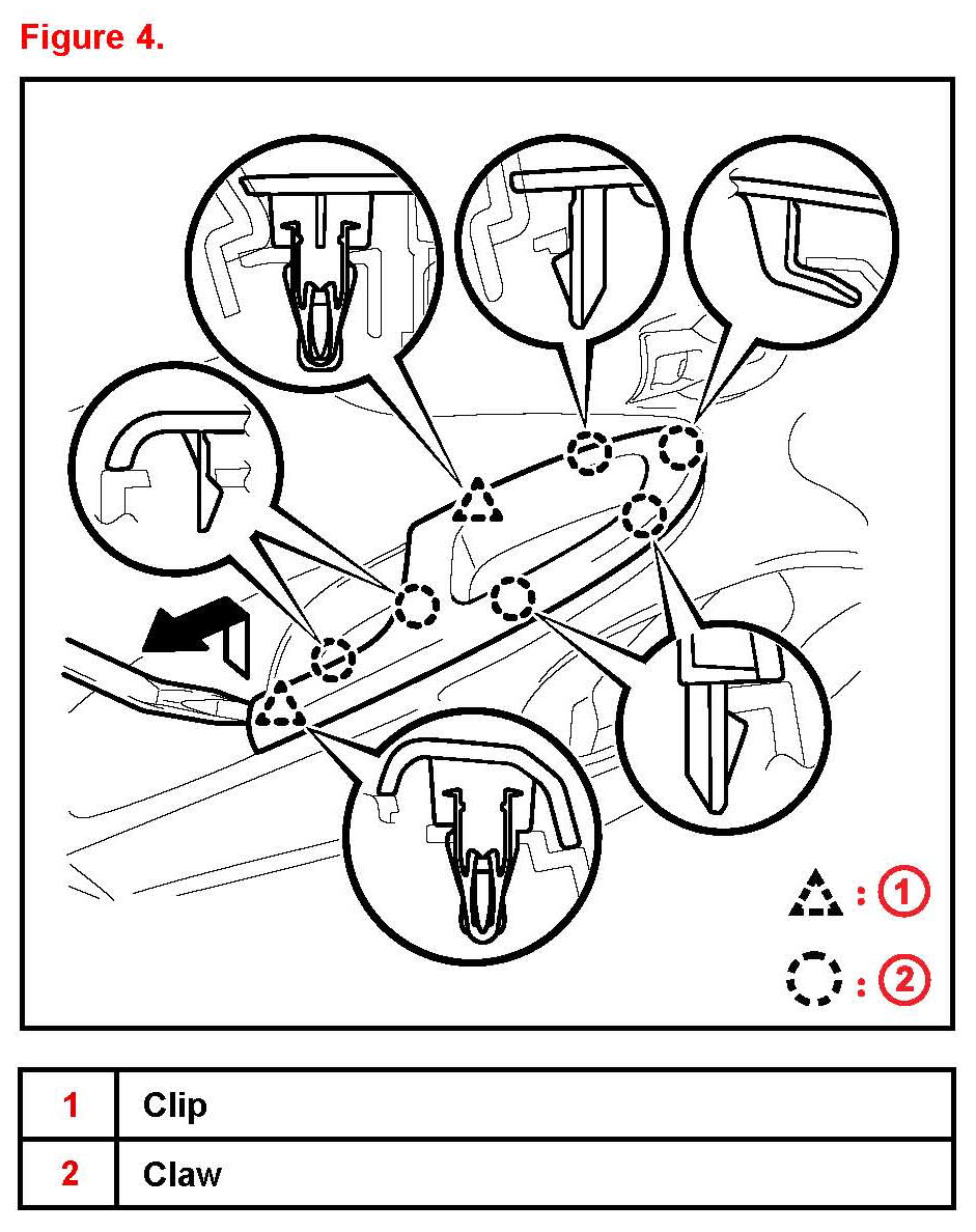 C. Using a clip remover, disengage the 10 clips. Figure 8.
