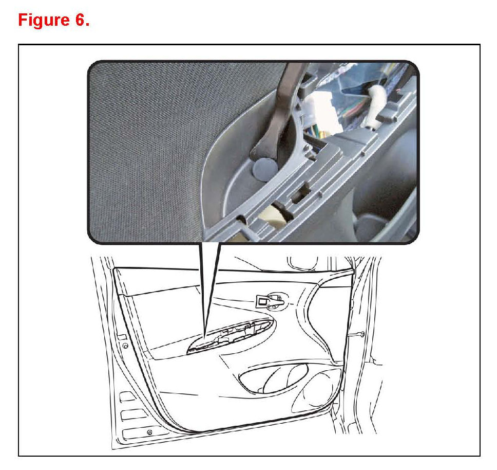 6. Remove the front armrest upper base panel (with power window).