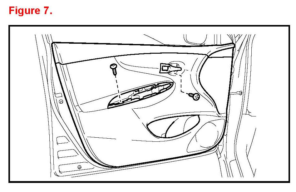 7. Remove the front door trim board sub-assembly.