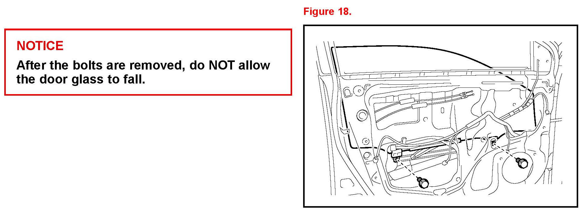 After the bolts are removed, do NOT allow the door glass to fall.