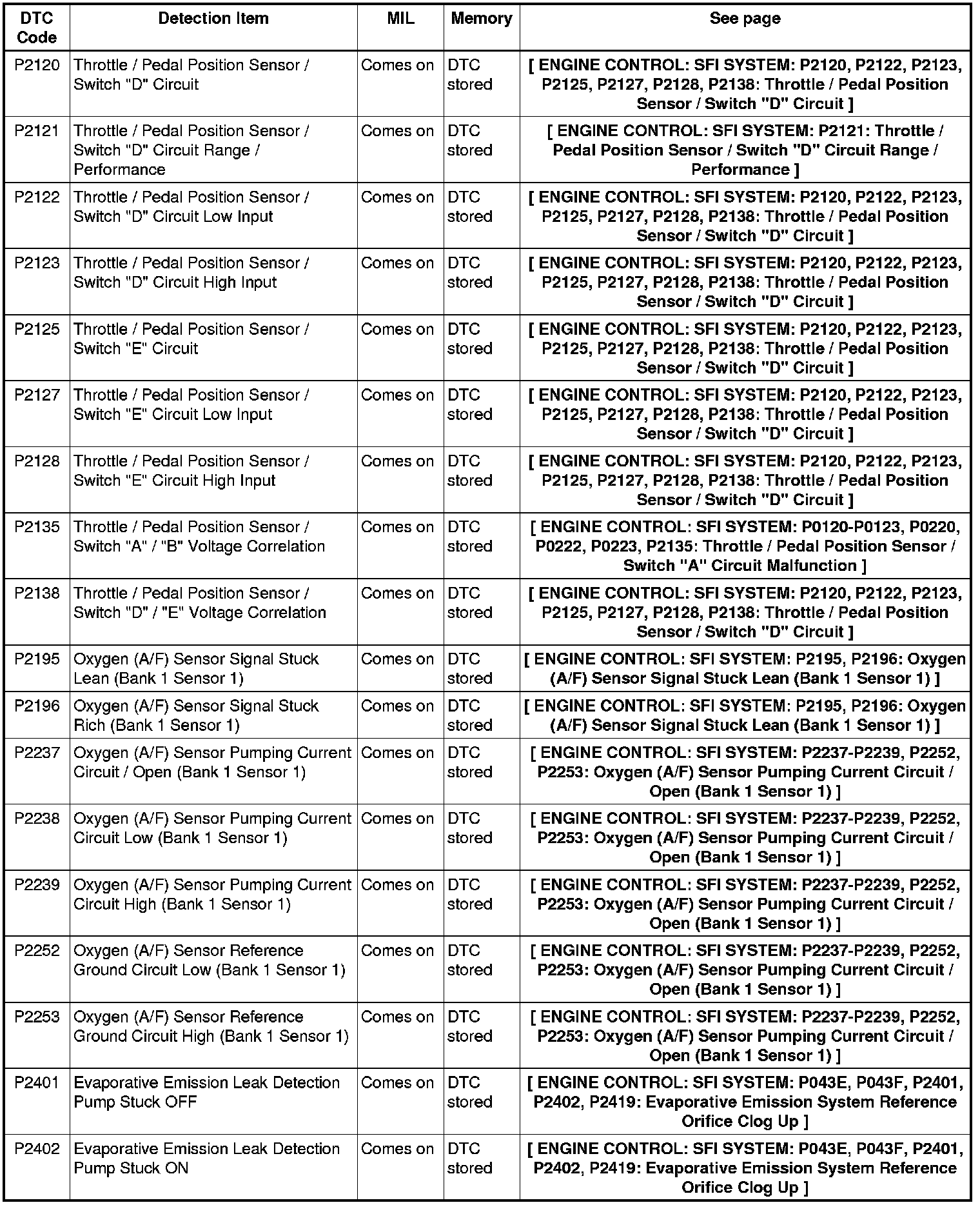 2AZ-FE ENGINE CONTROL: SFI SYSTEM: DIAGNOSTIC TROUBLE CODE CHART
