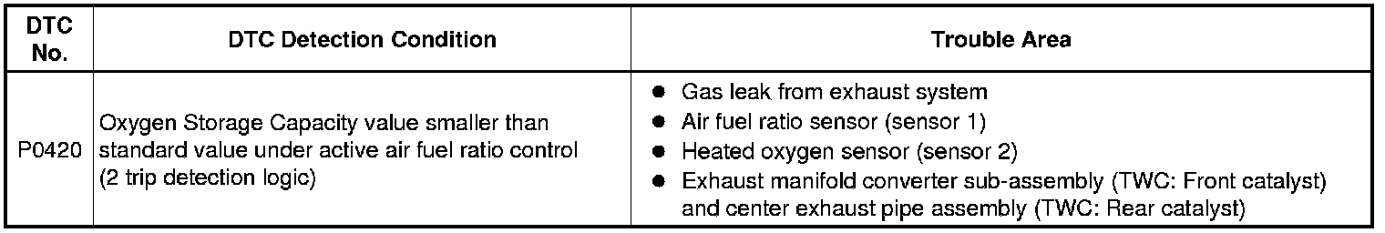 * If a malfunction cannot be found when troubleshooting DTC P0420, a lean or rich abnormality may be the cause. Perform troubleshooting by following the inspection procedure for P0171 (System Too Lean) and P0172 (System Too Rich).