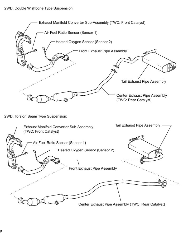 (b) Replace the center exhaust pipe assembly (TWC: Rear catalyst) Components for 2WD, Components for 4WD).