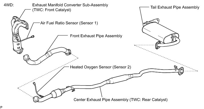Replace the exhaust manifold converter sub-assembly (TWC: Front catalyst) and the center exhaust pipe assembly (TWC: Rear catalyst) together when catalyst replacement is necessary.