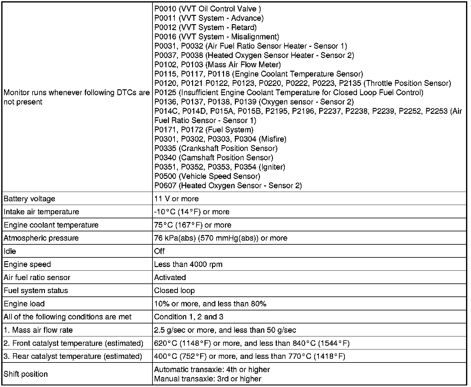 * The monitor item will change to Complete as the Catalyst Efficiency monitor operates [C].