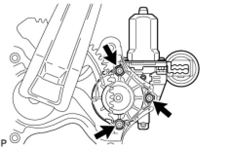 (a) Using a "TORX" socket wrench (T25), install the rear power window regulator motor assembly with the 3 screws.
