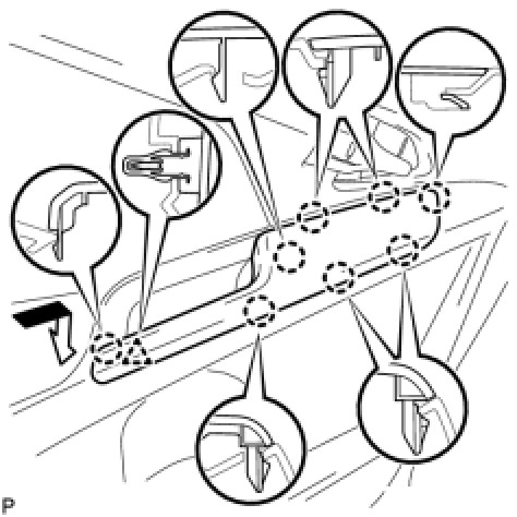 (a) Engage the 16 clips and install the rear door weatherstrip.