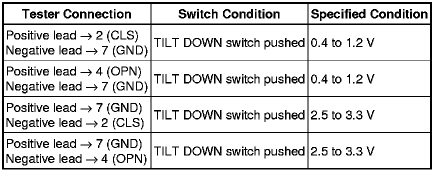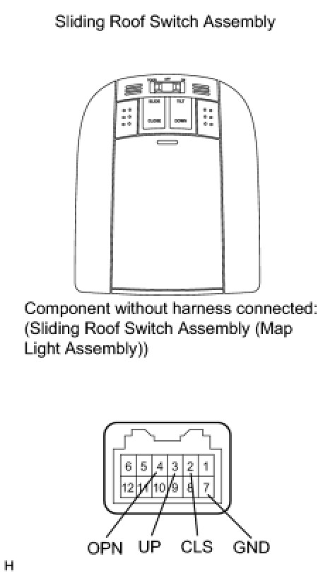 If the result is not as specified, replace the sliding roof switch assembly (map light assembly).