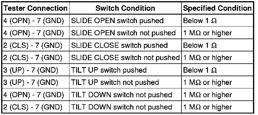 SLIDING ROOF / CONVERTIBLE: SLIDING ROOF SWITCH ASSEMBLY: INSPECTION