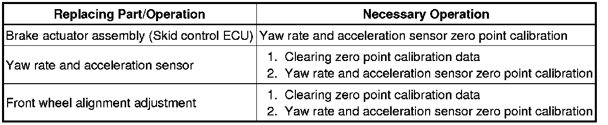 * After replacing the VSC relevant components or performing front wheel alignment adjustment, clear and read the sensor calibration data.