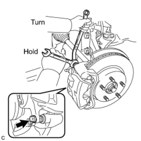(a) Hold the front disc brake cylinder slide pin, and install the front disc brake cylinder assembly to the front disc brake cylinder mounting with the 2 bolts.