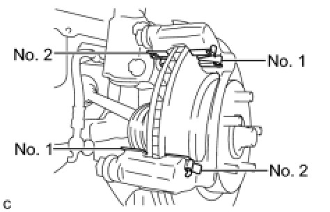 (b) Install the No. 1 front disc brake cylinder slide pin and No. 2 front disc brake cylinder slide pin to the cylinder mounting.