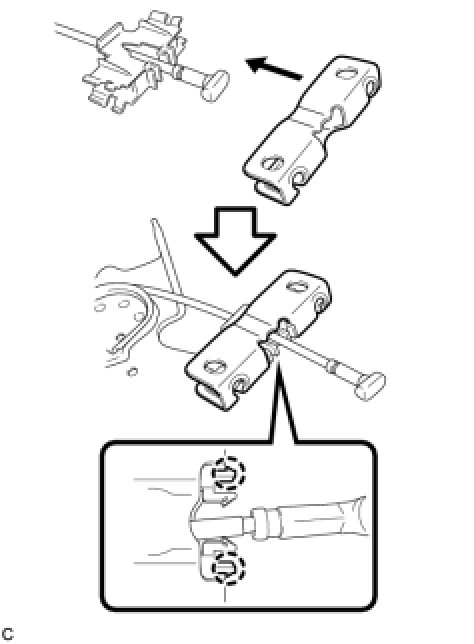 (b) Engage the 2 claws to install the parking brake cable end stopper to the No. 1 parking brake cable assembly.