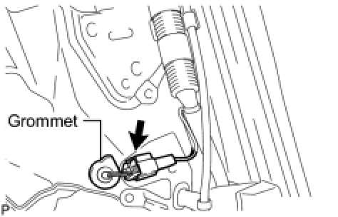 (b) Disconnect the grommet of the rear speed sensor wire from the hole in the wheel well.