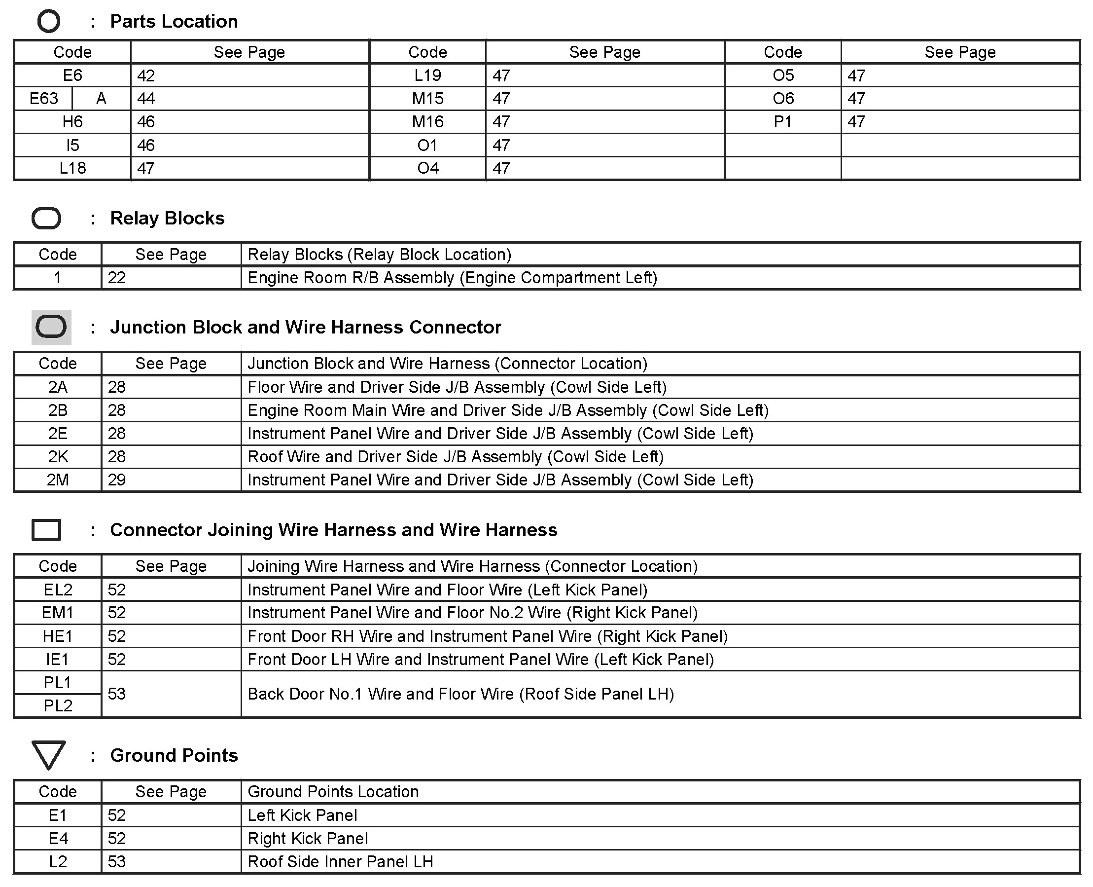 Locations: The locations of components, connectors, ground points, and splices referred to within these diagrams can be found at Vehicle Locations. Locations