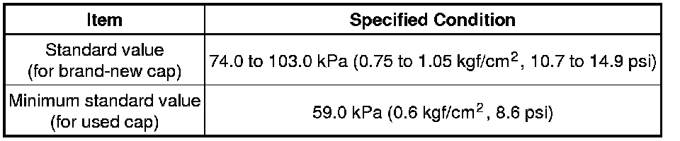 If the maximum pressure is less than the minimum standard value, replace the radiator cap sub-assembly.