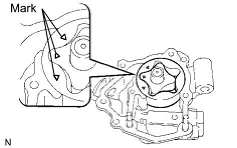 (b) Place the drive and driven rotors into the oil pump with the marks facing the pump cover side.