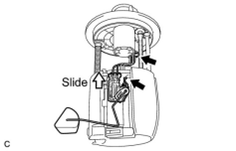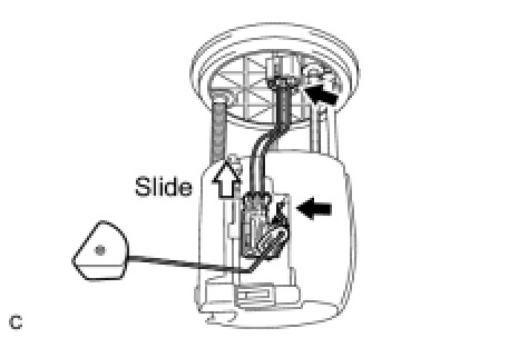 (b) Release the lock and slide the fuel sender gauge assembly to remove it.