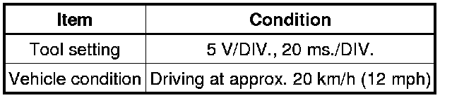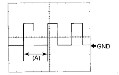 When the system is functioning normally, one wheel revolution generates 4 pulses. As the vehicle speed increases, the width indicated by (A) in the illustration narrows.
