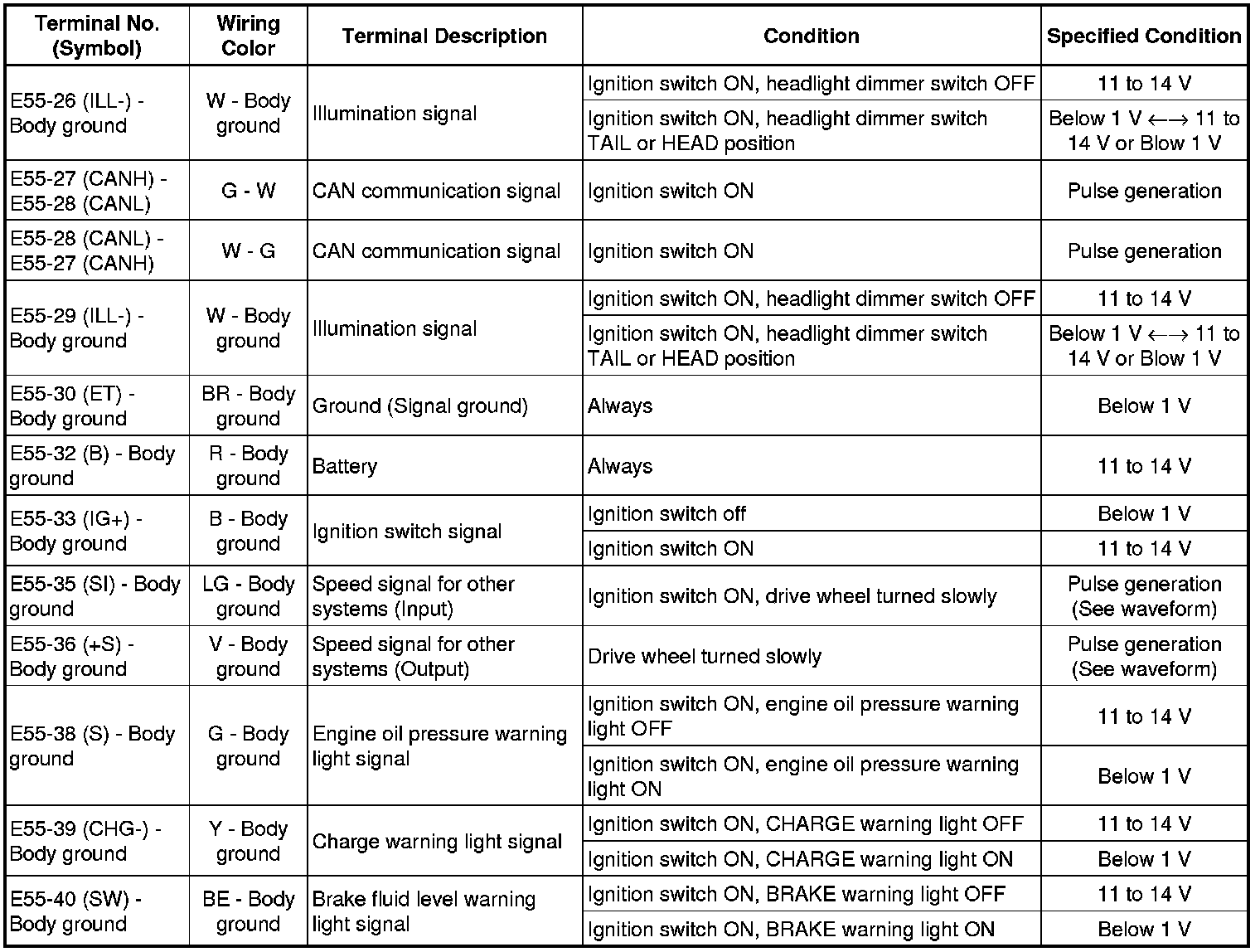 METER / GAUGE / DISPLAY: METER / GAUGE SYSTEM: TERMINALS OF ECU