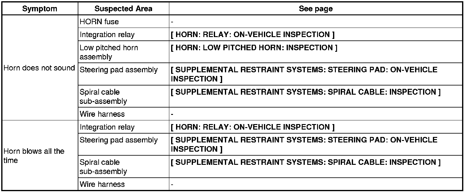 HORN: HORN SYSTEM: PROBLEM SYMPTOMS TABLE