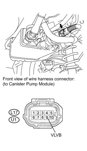 * When replacing the canister, check the canister pump module interior and related pipes for water, fuel and other liquids. If liquids are present, check for disconnections and/or cracks in the following: 1) the pipe from the air inlet port to the canister pump module; 2) the canister filter; and 3) the fuel tank vent hose.