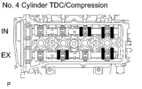(b) Turn the crankshaft 1 revolution (360°) and set the No. 4 cylinder to TDC/compression.