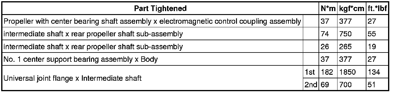SPECIFICATIONS: DRIVE SHAFT / PROPELLER SHAFT: TORQUE SPECIFICATIONS