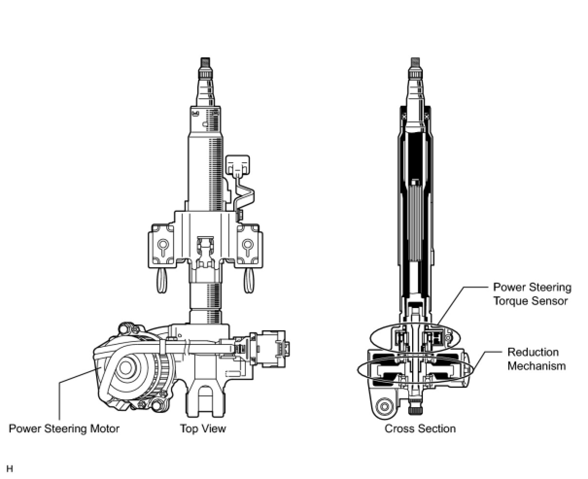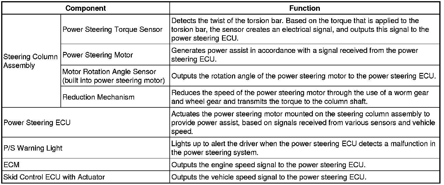 (a) The EPS (Electric Power Steering) system uses a motor and reduction mechanism built into the steering gear housing to generate assist torque for the driver's steering effort. The amount of assist torque is calculated by the power steering ECU.
