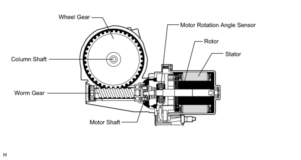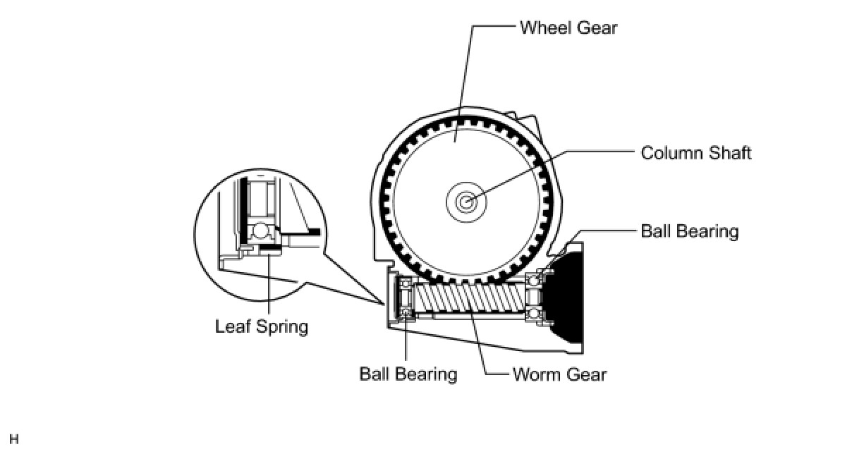 (1) This mechanism reduces the speed of the motor via the worm gear and the wheel gear, and transmits steering effort to the column shaft.