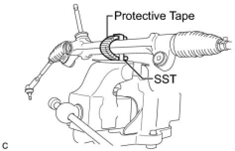 Make sure that the upper ends of the tie rod end and SST are aligned.