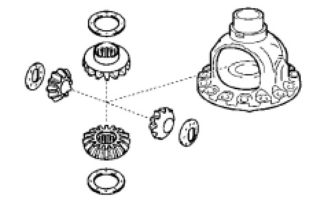 (a) Coat the 2 front differential side gears, 2 side gear thrust washers, 2 differential pinions and 2 pinion thrust washers with ATF and install them to the differential case.