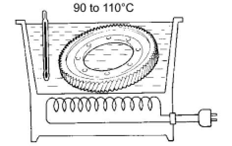 (a) Using ATF and a heater, heat the front differential ring gear to 90 to 110°C (194 to 230°F).