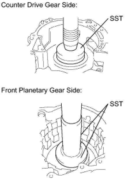 (c) Using SST and a press, install the counter drive gear and bearing to the transaxle.