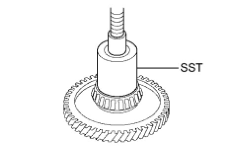 (a) Using SST and a press, press in the underdrive cylindrical roller bearing.