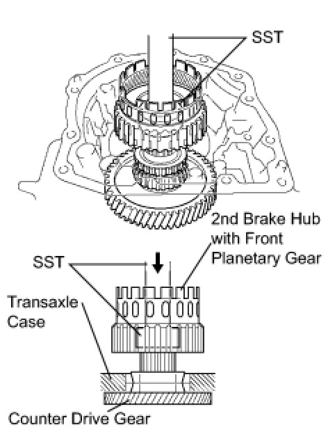 (b) Using SST and a press, press-fit the front planetary gear.